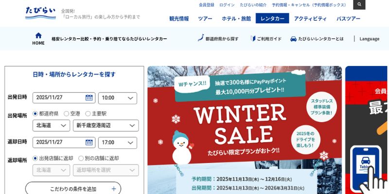 と決めている人はたびらいレンタカーを利用すると便利です。